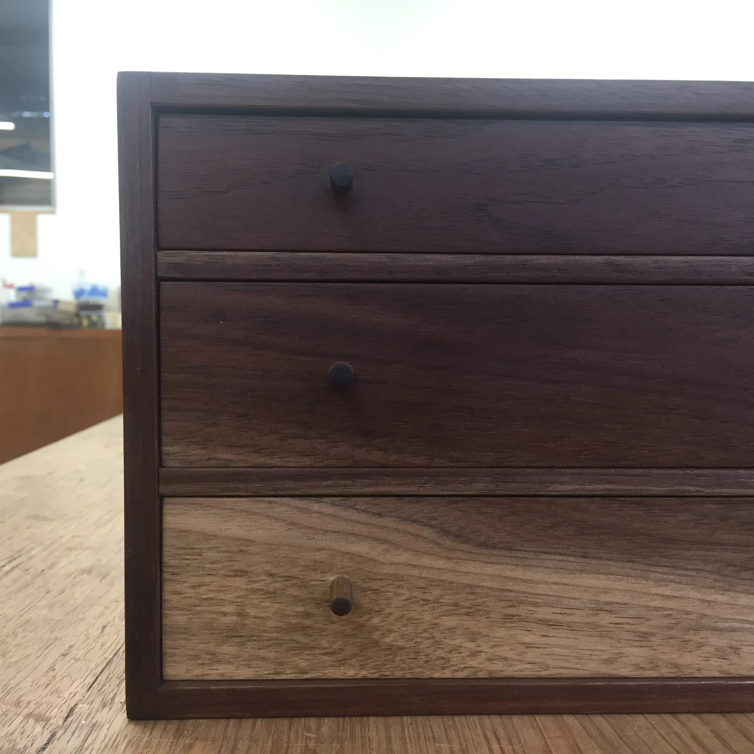 American Walnut & Rock Maple 3 Drawer Jewellery Box